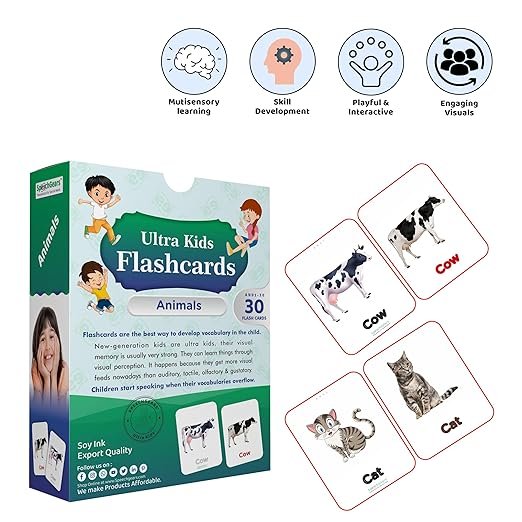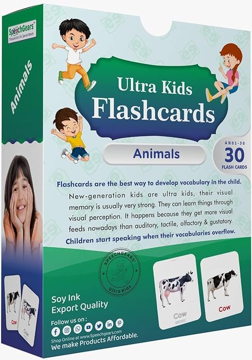 Features real-world images of common animals like lion, cat, elephant, monkey, and more.