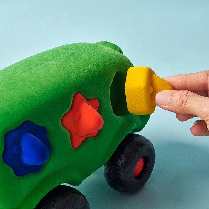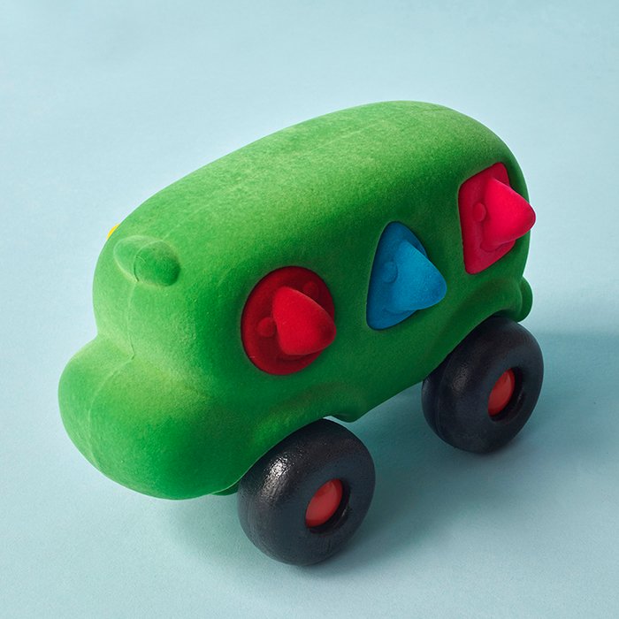 Shape sorter bus made with natural rubber